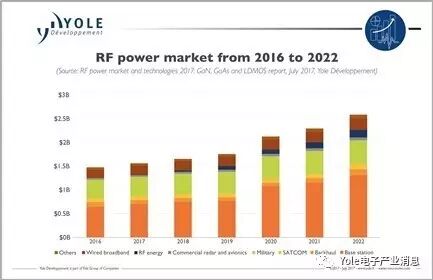 Yole预估在未来的几年间,随着电信基地台升级和smallcell小型基地台需求的增长,市场将会强劲增长。 2016年至2022年底,整体市场收入可能会上涨75%,在此期间複合增长率达到9.8%,市场规模从2016年的15亿美元到2022年的25亿美元。今日,市场正在跨过4G网路建置完成的门槛,然后开始向5G转型。当然,过程中还有很多待解决和建置的部分。然而,新的无线射频网路将需要更多的装置设备和更高的频率这两点是无庸置疑的。芯片供应商,特别是RF功率半导体销售商,将因此拥有巨大的发展机会。